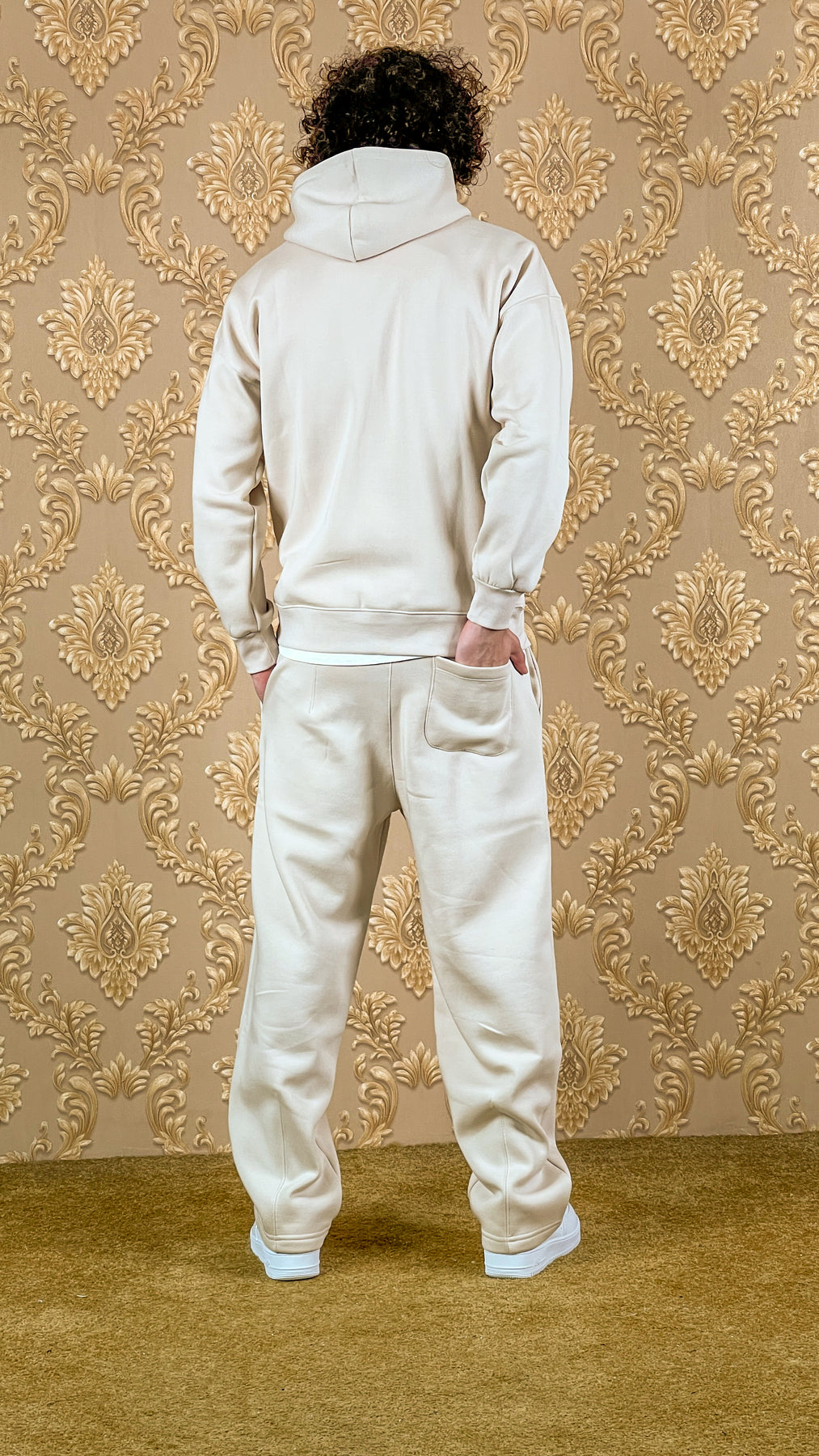 La Coupe: Oversize assumée et minimaliste — un duo hoodie & pantalon pensé pour une silhouette décontractée qui impose l'attitude sans effort. Capuche ample, cordon ajustable, taille élastique avec lien de serrage — un fit maîtrisé selon ton mood du jour.